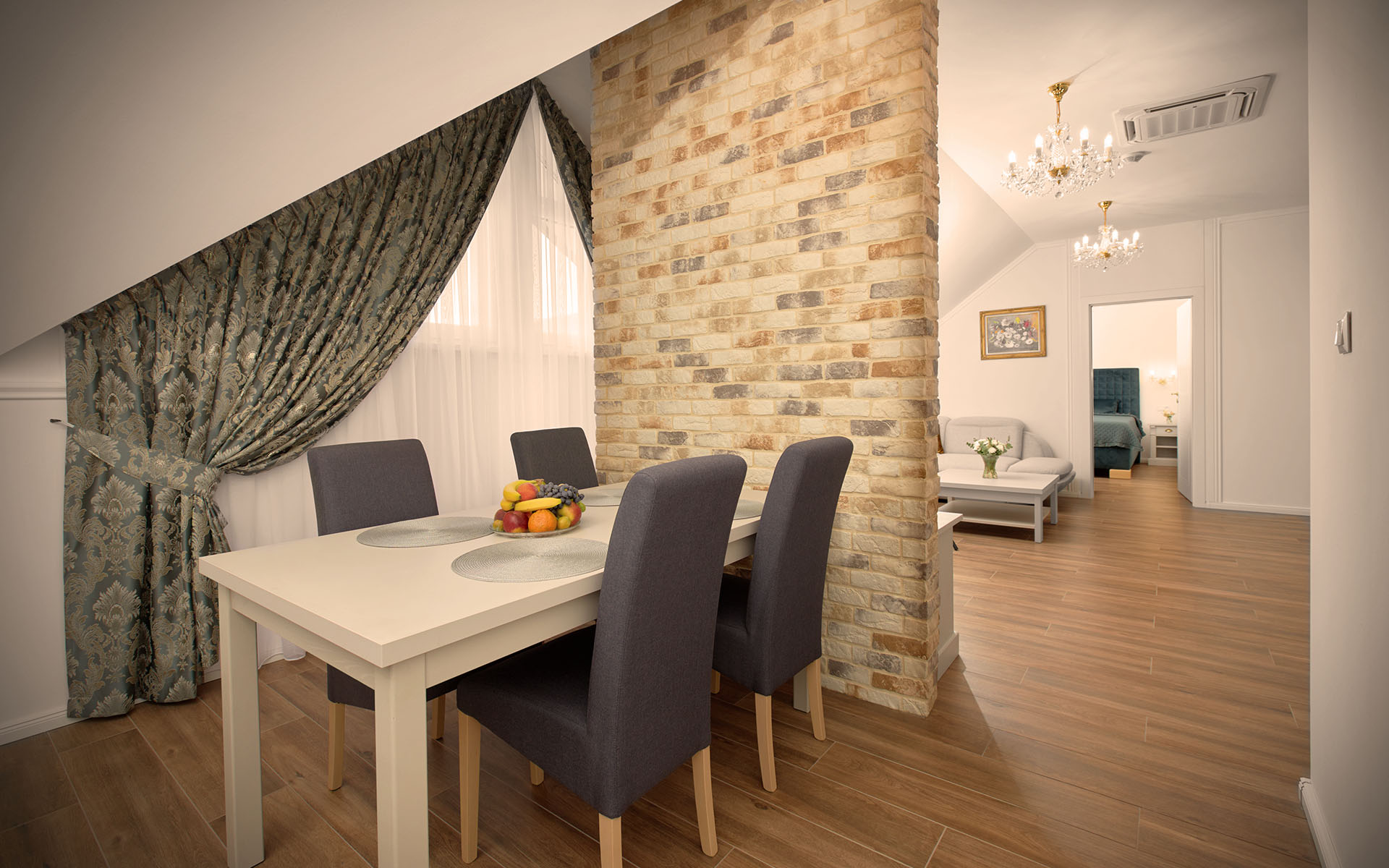Každý apartmán je luxusne vybavený vrátane prístelok, obývačky, kuchyne, kúpelne s WC, wi-fi , Smart TV so 171 kanálmi a streamovacími službami.